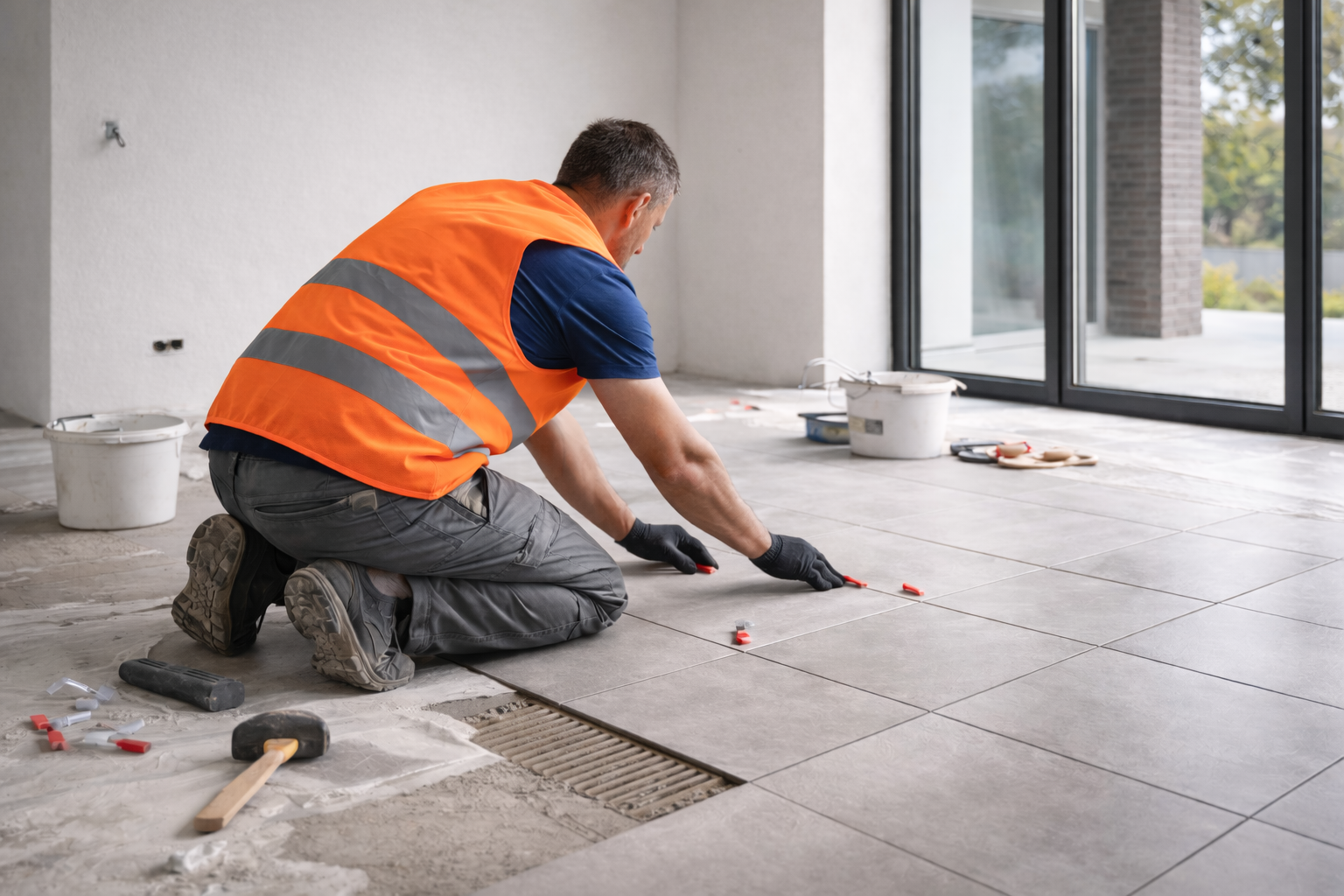 Με την έναρξη των εργασιών στο εργοτάξιο πραγματοποιούνται οι εκσκαφές και η διαμόρφωση του εδάφους σύμφωνα με τη μελέτη. Στη συνέχεια κατασκευάζεται η θεμελίωση από οπλισμένο σκυρόδεμα, η οποία αποτελεί τη βάση και εξασφαλίζει τη σταθερότητα ολόκληρου του κτιρίου.